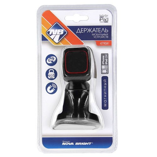 Универсальный держатель предназначен для установки мобильных устройств в салоне автомобиля. Легко крепится на лобовое стекло или панель приборов при помощи вакуумной присоски. Рекомендован для устройств весом до 200гр. Шаровое крепление верхней части держателя позволяют закрепить мобильное устройство под удобным для использования углом обзора. Высота изделия – 100 мм. Материал корпуса: пластик. Цвет: черный. Упаковка: двойной блистер. В комплекте – две металлические пластины для крепления на мобильном устройстве.