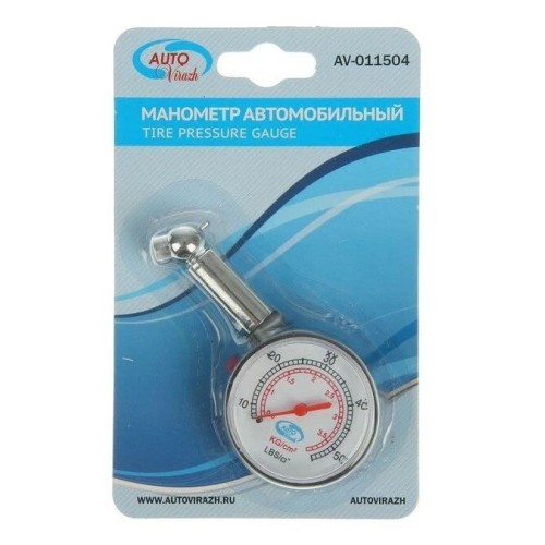 Манометр шинный Autovirazh AV-011504, в блистере. С помощью манометра вы быстро измерите давление в шинах. Простая надёжная конструкция не подведёт даже при отрицательной температуре и прослужит долгое время. Информативная легко читаемая шкала позволит увидеть точный результат. Обратите внимание Проверяйте давление только на холодных покрышках. Для корректного измерения не допускайте шипения воздуха в момент прижатия устройства к ниппелю.
