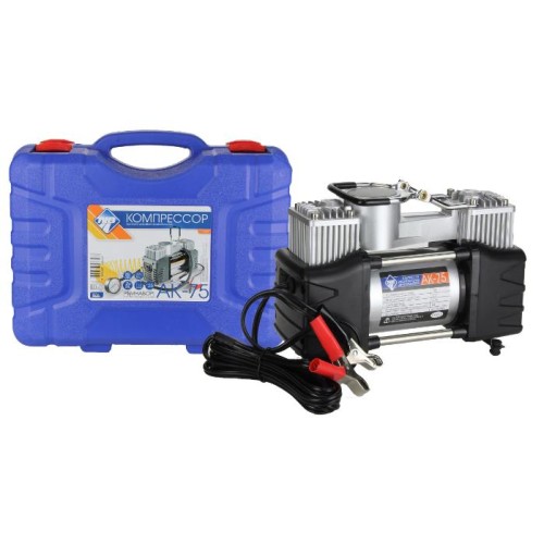 Мощность – 180 Вт. - Максимальная сила тока – 20 А. - Максимальное давление – до 10 кг/см? (150PSI/10Bar) - Производительность – до 75 л/мин. - Шнур питания – 2,7 м. - Воздушный шланг – 5м. - Пластиковый кейс для хранения и переноски - Подключение к клеммам АКБ при помощи металлических зажимов - Комплект насадок-переходников – 3 шт. -Набор дорожного инструмента Цвет- серебро Напряжение питания - 12В. Состав:металл, пластик