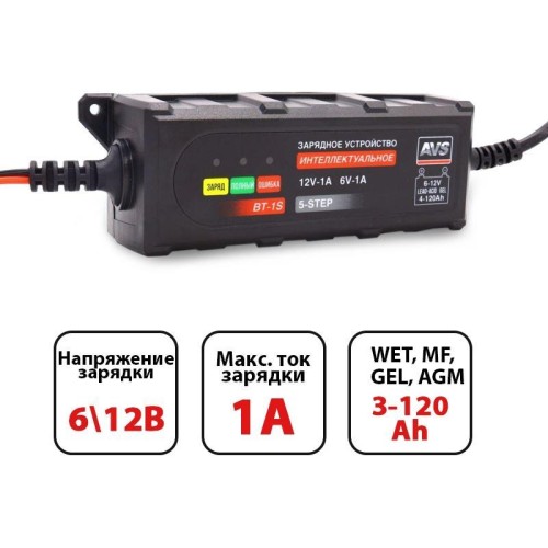 AVS BT-1S для автомобильного аккумулятора (1A, 20W) 6/12V