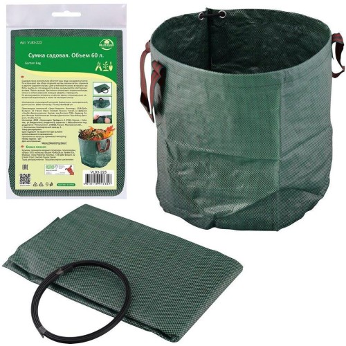 Садовая сумка значительно облегчит ваш труд на садовом участке. Ее используют при сборе опавшей листвы, мелких веток, сорняков и другого садового мусора. Для устойчивости сумки в процессе работы, внутрь ее, по окружности верха, вкладывается пластиковая вставка. Проста в уходе. Достаточно ополоснуть в проточной воде, можно с использованием моющих средств, и просушить. Не рекомендуется оставлять на долгое время в помещениях с повышенной влажностью, а также на палящем солнце. Изготовлено: полимерный материал (полиэтилен, полипропилен), ручки-состав:100% полиэстер. Размер 45х45х38см.