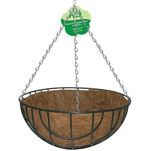 Подвесное кашпо используется для домашних и садовых растений. Кокосовый наполнитель не требует использования цветочного горшка. Кашпо хорошо смотрится, в нем не застаивается влага и растения дышат. Может использоваться как снаружи, так и внутри помещения. Подвешивается на трех цепочках, которые объединены одним удобным крючком. Изготовлено: каркас, цепочки и крюк из металла с покрытием, корзина из кокосового волокна. Диаметр 35 см, глубина 18 см. ВНИМАНИЕ Не лейте слишком много воды, чтобы кокосовая корзина не протекла.