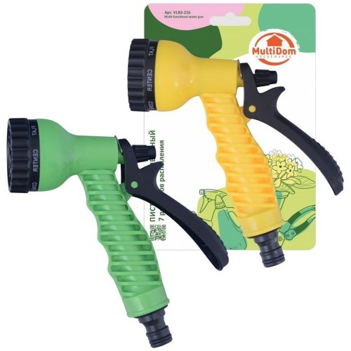 Пистолет поливочный – это незаменимый инструмент для огородников и садоводов. С помощью пистолета вы сможете легко и эффективно поливать огород, рассаду, цветы, газон, деревья. Благодаря различным режимам, можно легко регулировать интенсивность полива, выбирая между мощным потоком для полива грядок и кустарников или мягким дождем для ухода за цветочными клумбами, рассадой и молодыми растениями. Пистолет подойдет для мойки автомобиля, фасада дома, плитки и тротуарных дорожек. Эргономичная ручка и удобный переключатель позволяют легко контролировать поток воды и выбирать нужный режим. Для подключения пистолета к шлангу, используйте коннектор соответствующий диаметру вашего шланга (в комплект не входит). 7 режимов полива: ПОЛНЫЙ, ТУМАН, СТРУЯ, ДУШ, ПЛОСКИЙ, ПО ЦЕНТРУ, КОНУС. Изготовлено из пластмассы (ABS, полипропилен). Размер 15х15х5 см.