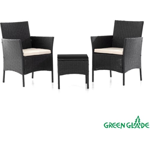 Комплект садовой мебели GREEN GLADE - отличный выбор для того, чтобы отдыхать на свежем воздухе с комфортом. • Комплектация: 2 кресла, стол • Размер кресел: 58х58х82 см • Размер журнального столика: 40х40х38 см • Материал мебели: полипропилен, имитирующий плетение под ротанг 9х1,1 мм • Каркас: оцинкованная труба с порошковым покрытием • Размер трубы: сиденье/подлокотник: 18х18х0,7 мм, спинка/подлокотник: 12х18х0,6 мм, подлокотник: 15х15х0,6 мм; журнальный столик: 15х15х0,6 мм • Внутренний материал подушек: 5 см, хлопок 800 г/м2 • Ткань подушек: полиэстер 160 г/м2, водонепроницаемый • Материал столешницы: закаленное стекло толщиной 5 мм • Максимальная нагрузка кресла: 120 кг • Максимальная нагрузка стола: 25 кг • Цвет мебели: антрацит • Цвет подушек: белый • Цвет стекла: чёрный • Размер коробки: 66,5х36х54 см • Вес нетто: 15,5 кг • Вес брутто: 17 кг • Производитель: Green Glade • Страна: Китай