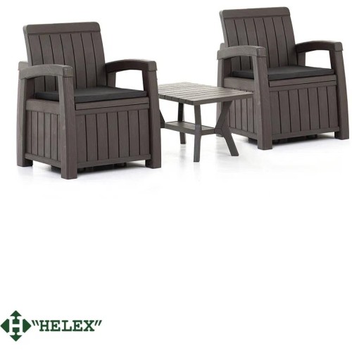 Этот набор станет идеальным решением для создания комфортного пространства на свежем воздухе. В набор входит 2 кресла и столик, что позволяет обустроить уютное место для отдыха и общения с друзьями или семьей. Стильный современный дизайн идеально впишется в любой интерьер, а внешняя имитация дерева делает садовую мебель визуально привлекательной и органично вписывающейся в природный ландшафт. • Материал: полипропилен • Цвет: мокко (темно коричневый) • Размер кресла (ШхГхВ): 69,5х65,8х89,8 см • Размер стола (ШхГхВ): 76,1х50,1х41,7 см • Максимальная распределенная нагрузка на кресло: 210 кг, на стол: 90 кг • Подушки в комплекте – 2 шт. • Транспортная упаковка: 119х79х40 см • Вес нетто: кресло 10,6 кг, стол 3,3 кг • Вес брутто: 28,10 кг • Производитель: HELEX • Страна: Россия