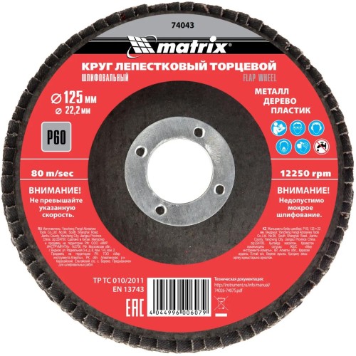 MATRIX Круг лепестковый торцевой, P 60, 125 х 22,2 мм//