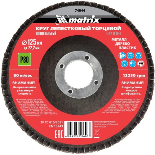 MATRIX Круг лепестковый торцевой, P 80, 125 х 22,2 мм//