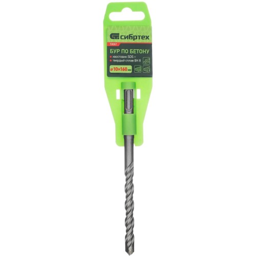 Бур по бетону Сибртех 70557 размером 10 х 160 мм предназначен для перфораторов с хвостовиком типа SDS Plus.