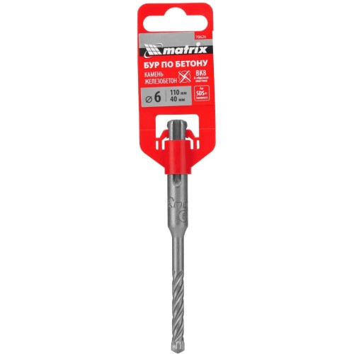 Бур по бетону Matrix 70626 размером 6 х 110 мм используется с перфораторами типа SDS Plus.