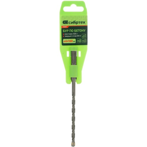 Бур по бетону Сибртех 70555 размером 6 х 160 мм предназначен для перфораторов с хвостовиком типа SDS Plus.