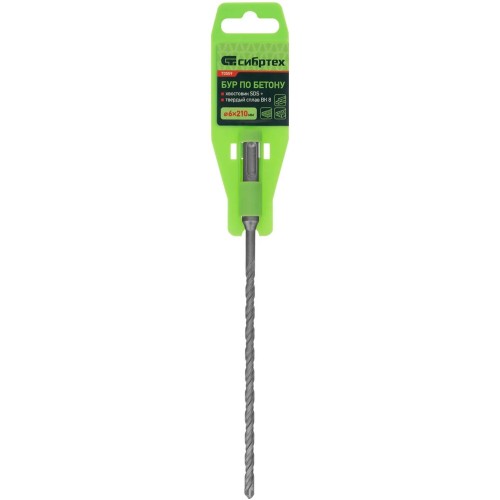 Бур по бетону Сибртех 70559 размером 6 х 210 мм предназначен для перфораторов с хвостовиком типа SDS Plus.