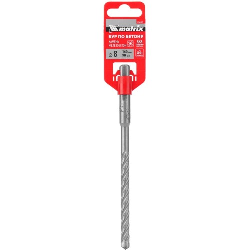 Бур по бетону Matrix 70638 размером 8 х 160 мм используется с перфораторами типа SDS Plus.