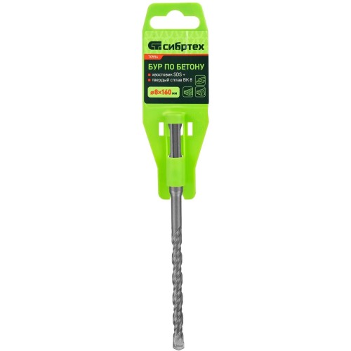 Бур по бетону Сибртех 70556 размером 8 х 160 мм предназначен для перфораторов с хвостовиком типа SDS Plus