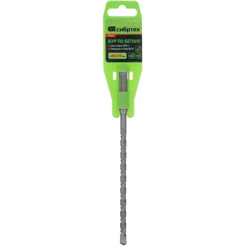 Бур по бетону Сибртех 70560 размером 8 х 210 мм предназначен для перфораторов с хвостовиком типа SDS Plus.