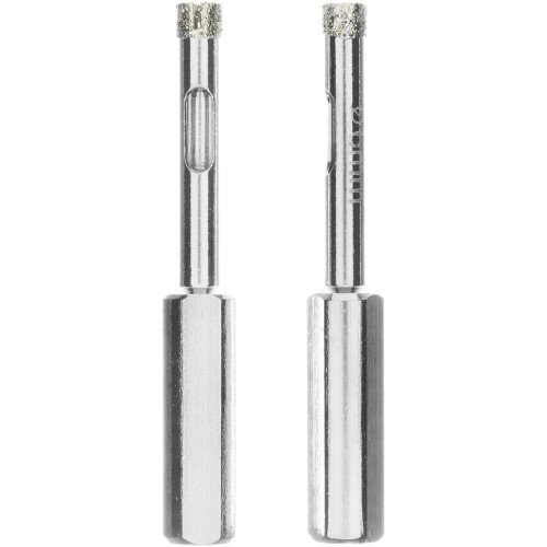 Универсальное алмазное сверло по керамограниту Matrix 726063 размером 6 х 67 мм, с 3-гранным хвостовиком, 2 шт. в упаковке, применяется для получения отверстий в стекле, плитке, кафеле. За счет высокой концентрации алмазов в режущем слое оно легко справляется со сверлением керамогранита.