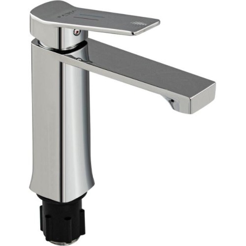 Смеситель для раковины, литой квадратный корпус, цвет хром, с прямым плоским изливом, ручка литая изогнутая, шаровый. Крепление резьба - гайка, картридж d = 35 мм. Аэратор для экономии воды. Такая модель может использоваться на домашней кухне, на даче, в медицинских учреждениях и общественных местах. Габаритные размеры: высота 190 мм, длина 165 мм, посадочное седло 50 мм, длина резьбы 45 мм, длина подводки 450 мм. Вес - 1.4 кг, объём - 0.0038 м3. В комплекте паспорт, корпус, подводка 1/2, крепеж, набор прокладок.