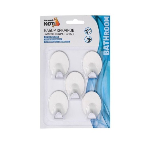 РЫЖИЙ КОТ Набор крючков самоклеящихся "Овал", 5 шт (008226)