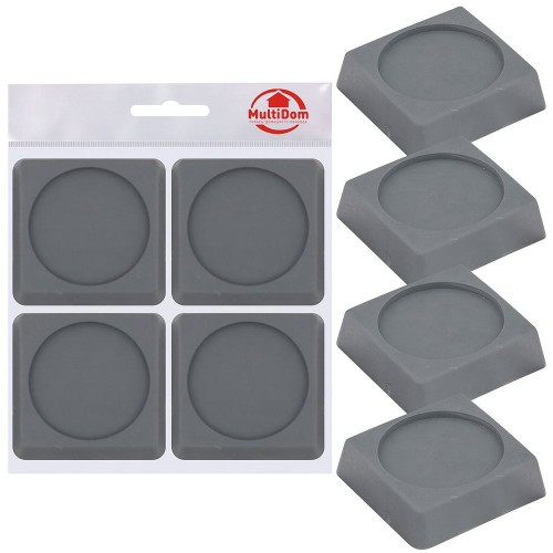 Тишина при работающей бытовой технике дома – это возможно. Значительно погасить вибрацию и сохранить работоспособность техники помогут специальные подставки. Применение подставок позволяет значительно снизить нагрузку ножек техники на напольное покрытие, керамическую плитку, деревянные полы, а также предотвращает скольжение стиральной машины при работе в режиме отжима. Снижение вибрации при работе техники достигается оптимальной формой подставок и использованием высокопрочного материала. Количество в комплекте: 4 шт. Размер 6х6 см, высота 1,5см. Эффект: меньше раздражающих шумов, предотвращение повреждения пола. Способ применения: отрегулировать горизонтальное положение стиральной машины или холодильника. Подложить под каждую ножку по 1 антивибрационной подставке. Изготовлены из полимерного материала (ТЭП).