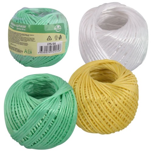 Веревка-шпагат используется для упаковки, сушки белья, для подвязывания растений в теплице. Веревка прочная, устойчива к влаге, не подвержена гниению. Изготовлена из полипропилена. Длина 60 м.