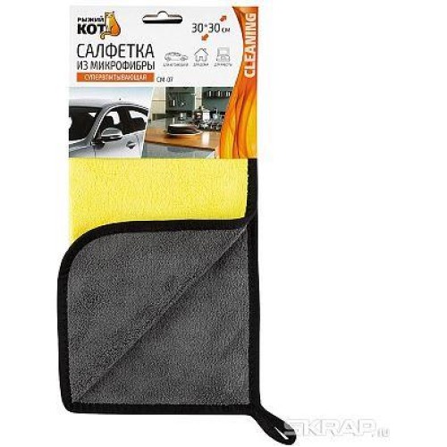 Салфетка из микрофибры универсальная двусторонняя Размер: 30х30 см Плотность: 500 гp/м? Состав: микрофибра (80% полиэстер, 20% полиамид) Цвет: серый/желтый Упаковка: хедер с подвесом Универсальная салфетка для уборки, мойки автомобиля и применения в быту