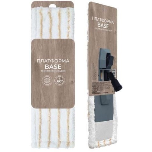 Платформа с насадкой не имеет черенка и даёт свободу выбора черенка покупателю, будь то черенок фиксированной длины или телескопический. Диаметр крепления 21мм. Платформа укомплектована сменной насадкой Base весом 50 грамм для моделей швабр Uno и Base, а также для любых прочих швабр, имеющих платформу 40х10см. Насадка из микрофибры не оставляет грязи и разводов, не царапает покрытие пола. Её можно стирать в стиральной машинке, она долговечна и экологична.