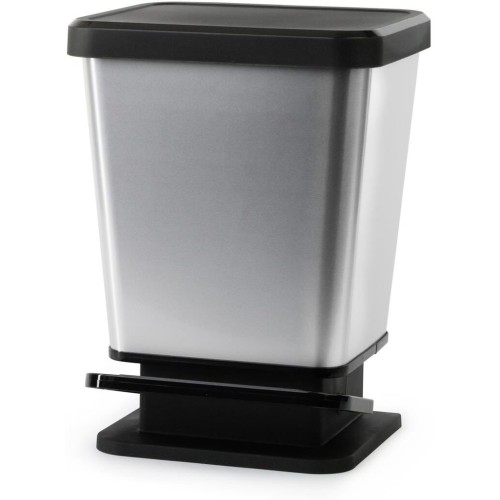 Контейнер для мусора "Металл" - это бесшумное закрытие крышки за счет встроенного микролифта. Контейнер легко открыть, даже если ваши руки заняты, просто нажав на педаль. Крышка мусорного бака скроет содержимое от домашних животных и защитит от распространения неприятных запахов. Специальная рамка под крышкой урны фиксирует и удерживает мешок на месте. Преимущество нашего контейнера заключается в технологии нанесения металлизированного листа. Простая форма и несложная конструкция придают эстетичность и легкость.