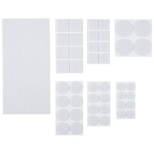 Набор: 45шт диаметр 16мм х 8шт, диаметр 20мм х 8шт, диаметр 25мм х 8шт, диаметр 35мм х 4шт, квадрат 20х20мм х 8шт, квадрат 25х25м х 8шт, 200х100ммх1шт Толщина: 2 мм Материал: 100% полиэстер Цвет: белый Упаковка: пакет+хеддер Включает семь типоразмеров из