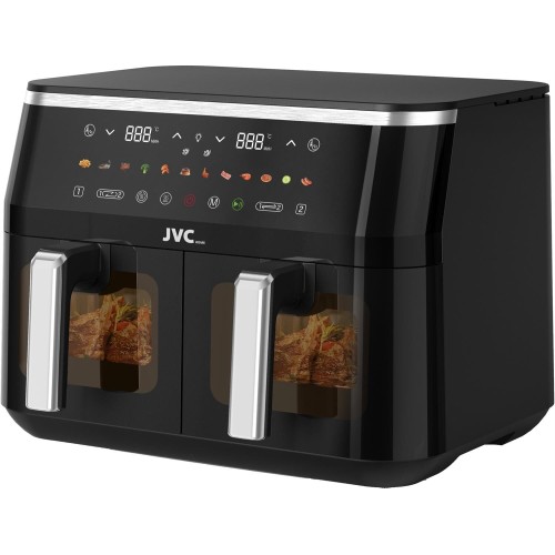 Горизонтальный аэрогриль 2 в 1, технология "Fry Force 360°" позволяет готовить блюда быстро и равномерно, практически без маслаЮ электронное управление, большой светодиодный дисплей, мощность: 1600 Вт + 1600 Вт, внутренний объем: 5.5 Л + 5.5, антипригарное покрытие чаши и решетки, cмотровое окно для каждой чаши , внутренняя подсветка, таймер, регулируемая температура: 60-220 градусов, ручная настройка режимов приготовления, 12 предустановленных программ приготовления