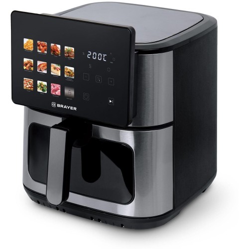 Верхний ТЭН – 1500 Вт Нижний ТЭН – 500 Вт Объем 8 л 12 программ: фри, голень, курица, мясо, морепродукты, колбаски, запеканка, картофель по-деревенски, пицца, овощи, разморозка, подогрев 2 тэна для равномерного прогрева с двух сторон Корпус из высокопрочного термостойкого пластика Функция подогрева пищи Сенсорное управление LED-дисплей Регулировка температуры 80–200 °С Таймер 60 мин Съемная решетка с антипригарным покрытием Звуковой сигнал готовности блюда 1 класс энергоэффективности Чашу не рекомендуется мыть в посудомоечной машине Электропитание 220-240 В, ~ 50-60 Гц