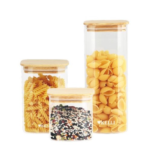 Набор стеклянных банок для сыпучих с бамбуковой крышкой. В наборе три банки. Объём 0,75 л; 1,1 л; 2 л. Экологичные материалы: боросиликатное стекло и бамбук. Размер: 10,3*10см; 10,3*15см; 10,3*25см. Удобно мыть и хранить.