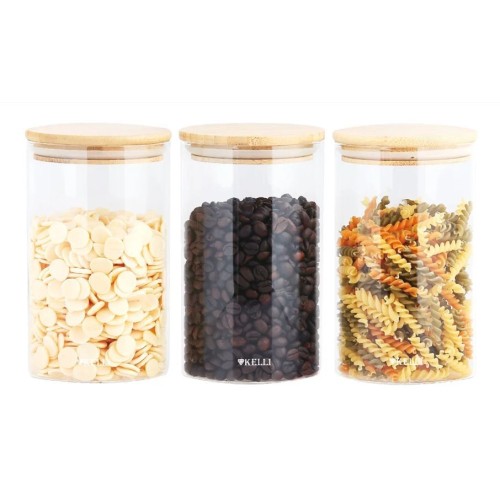 Набор стеклянных банок для сыпучих с бамбуковой крышкой. В наборе три банки. Объём каждой 1 л. Экологичные материалы: боросиликатное стекло и бамбук. Размер: 10*17см. Удобно мыть и хранить.