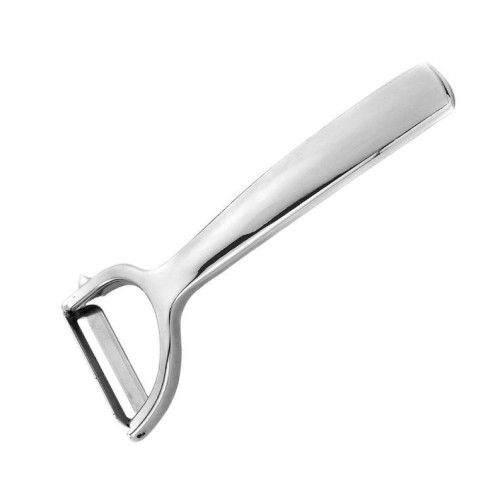 Овощечистка SEMPLICE с горизонтальным лезвием, сплав цинка хромированный/лезвие — нерж сталь материал — сплав цинка хромированный, нерж сталь р-р 15*6,3*0,6 см/длина лезвия 5,9 см тм Mallony Вес — 0,078 кг Упаковка: цветная картонная подложка с подвесом