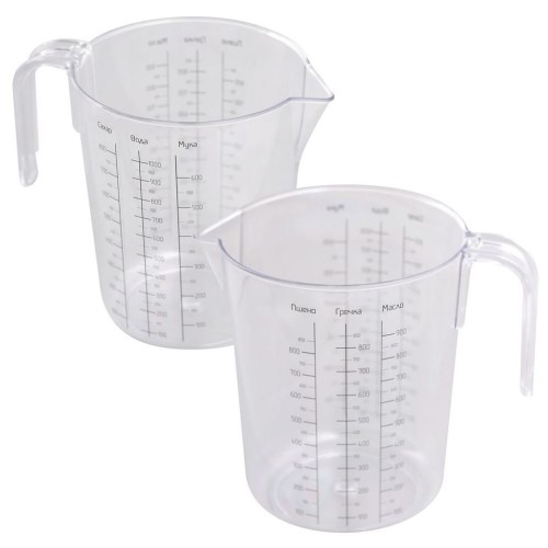 Мерная кружка-один из главных помощников любой хозяйки на кухне. У кружки имеется удобная ручка и носик для переливания и пересыпания продуктов. Мерная кружка имеет мерную шкалу и подходит для измерения сыпучих продуктов: муки, сахара, пшена, гречки, а также для измерения жидких продуктов-воды, растительного масла, сиропа, рассола и т. п. Прозрачные стенки кружки позволяют контролировать процесс измерения. Лаконичный дизайн прекрасно впишется в интерьер любой кухни. Изготовлено из пластмассы (полистирол).