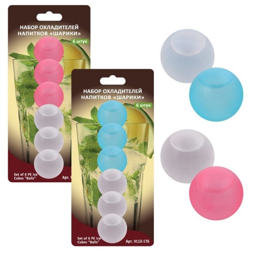 Шарики для охлаждения напитков можно замораживать и размораживать сколько угодно раз Пластмассовые охладители с дистиллированной водой внутри не разбавляют вкус напитка и делают его по-настоящему прохладным. А еще, они станут оригинальным украшением для коктейлей, морсов, соков и других прохладительных напитков. Набор охладителей напитков "Шарики" подходит для повседневного использования, для коктейльных вечеринок и для быстрого охлаждения жидкостей. Использование полностью безопасно. Шарики не займут много места в морозилке, удобны в хранении. После использования их достаточно вымыть и снова убрать в морозильную камеру для заморозки. Изготовлено из полимерного материала (полиэтилен) и дистиллированной водой. Диаметр 2,8 см.