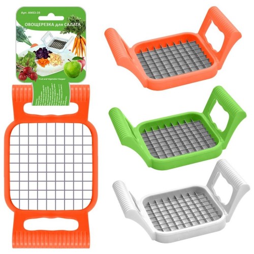 Овощерезка для салата предназначена для нарезки овощей и фруктов аккуратными кубиками. Простое и функциональное приспособление выручит во время приготовления салатов, сделает процесс гораздо быстрее и проще. Характеристики: изготовлена из нержавеющей стали и пластмассы; имеет острые лезвия, которые отлично справляются с вареными продуктами или с нетвердыми свежими; ячейки 10х10 мм. Основные преимущества: позволяет быстро справиться с большими объемами продуктов. Это особенно удобно, когда нужно готовить много разных салатов на праздничное застолье; используется для самых разных продуктов: вареной свеклы, картофеля, моркови, свежих нетвердых огурцов, фруктов, а также сыра и яиц; имеет прочную цельную конструкцию, которой легко пользоваться. Изделие не нуждается в особом уходе, его достаточно промывать в воде с моющими средствами и с губкой; инструмент не занимает много места, его удобно хранить на полке, в ящике шкафа, на крючке на рейлинге.
