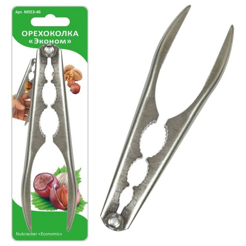 Щипцевидная орехоколка – это самая популярная модель для использования в бытовых условиях. Изделие используется для раскалывания орехов и косточек различных плодов. Бытовая орехоколка максимально сохраняет целостность продукта, имеет несколько отверстий для орехов разных размеров, выполнена из прочного материала – нержавеющей стали. Чтобы расколоть скорлупу, выберите нужное отверстие, зафиксируйте продукт и сомкните рукоятки.