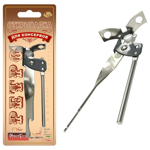 Надежная универсальная открывалка – незаменимый помощник в домашнем хозяйстве. Приспособление решает 2 задачи: открывает консервные банки; открывает крышки бутылок. Преимущество открывалки в том, что она максимально безопасна. Края крышки получаются абсолютно ровными, о них невозможно порезаться. Основа механизма – дисковый нож, который вращаясь, делает прорези в банке. Приспособление занимает мало места и за ним просто ухаживать, достаточно мыть после использования. Простая и надежная конструкция делает изделие долговечным. Его практически невозможно сломать, а диски сохраняют остроту продолжительное время. Ретро дизайн знаком многим с детства, подобное приспособление можно часто встретить в домах. Универсальная открывалка – востребованный товар, который покупают для использования дома, на даче, в поездках.