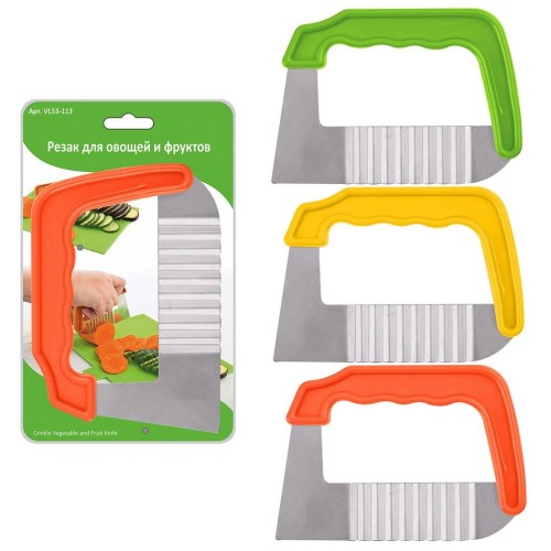 С помощью ножа для фигурной резки, вы сможете украсить ваш праздничный стол красиво нарезанными овощами и фруктами. Он станет вашим незаменимым помощником при нарезке сыра, сливочного масла. Ножом можно нарезать "вафельки" и красивые фигурные спиральки из овощей. Волнистые ломтики продуктов будут смотреться очень красиво и привлекут внимание ваших гостей и домочадцев к трапезе. А также ваша домашняя консервация будет выглядеть ещё аппетитнее с такими фигурными ломтиками. Лезвие из нержавейки прослужит долгое время, а удобная пластиковая ручка позволит вам порезать большое количество овощей, не прилагая особых усилий. После использования, промыть в проточной воде с использованием жидких моющих средств. Можно мыть в посудомоечной машине. Изготовлено: лезвие из коррозионностойкой (нержавеющей) стали, ручка из пластмассы (полипропилен). Размер 12,5х8,5 см.