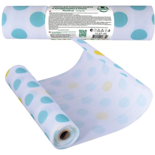 Коврики для кухонных шкафов, ящиков и холодильников стали незаменимым атрибутом в домашнем хозяйстве. Коврик может быть использована в нескольких целях: -в качестве подставок под кухонные аксессуары и бытовые приборы; -как подложка для оргтехники в кабинетах и офисах; -в качестве салфетки под цветочные горшки. Основное назначение изделия – защита мебели от вредного воздействия влаги, царапин. В некоторых случаях коврик может стать отличным маскировочным средством, если на поверхности стола или тумбы имеются сколы и потертости. Оригинальный дизайн придаст уюта вашему дому. Если за ковриком ухаживать, он прослужит очень долго. Достаточно периодически промывать его в проточной воде с моющим средством. Не предназначен для горячих предметов. Размер полотна 150х45 см, его можно использовать целиком или нарезать на салфетки небольших размеров. Изготовлено: полимерный материал (полиэтилентерефталат, вспененный полиэтилен).