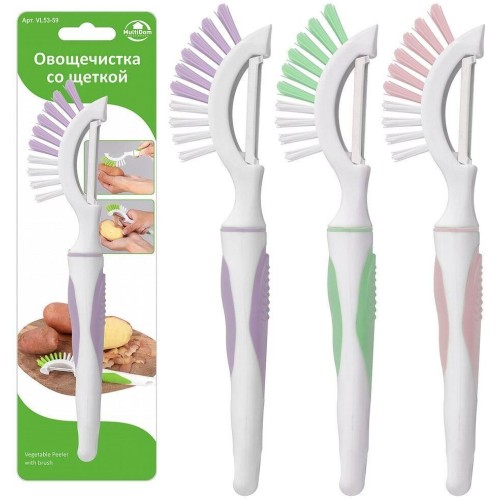 Овощечистка — кухонный инструмент для очистки овощей, фруктов, корнеплодов. Вертикальная овощечистка идеально подойдет для овощей продолговатой формы: моркови, огурцов, кабачков и т.п. Лезвие подходит для кожуры любой толщины, безопасно снимает ее ровным слоем, минимизируя пищевые отходы. Благодаря имеющейся щеточке, вы сможете удалить загрязнения с овощей и фруктов перед чисткой. Удобная ручка изделия обеспечивает дополнительный комфорт во время использования. Для удобства в хранении в ручке предусмотрено отверстие.