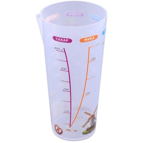 Стакан имеет мерную шкалу в граммах и мл, подходит для измерения сыпучих продуктов (сахара, муки, крахмала, пудры, риса, гречки), а также для измерения жидких продуктов (воды, растительного масла, сиропа, рассола и т.п.). Прозрачные стенки стакана позволяют контролировать процесс измерения. Благодаря носику, будет удобно переливать или пересыпать продукты. Перед первым применением и после каждого использованием рекомендуется помыть и просушить. Можно мыть в посудомоечной машине. Изготовлен из пластмассы (полипропилен) Размер 6-8,5х16,5 см, объем 500 мл.