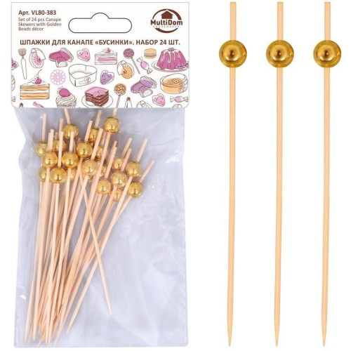 Шпажки используются при сервировке стола многослойными мини-бутербродами (канапе) из овощей, фруктов, ягод, сыров и мясных продуктов. Идеально подходят для фуршетов, вечеринок и праздников. Выбирайте любимые ингредиенты для приготовления порционных блюд, насаживайте их на шпажки и готовьте с удовольствием Шпажки заменят десертные вилочки на вашем праздничном столе, а оригинальный дизайн поднимет настроение гостям. Шпажки предназначены для одноразового использования. Изготовлено: древесина (бамбук), пластмасса (акрил). Размер: общая длина шпажки 12 см.