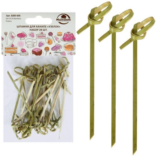 Шпажки используются при сервировке стола многослойными мини-бутербродами (канапе) из овощей, фруктов, ягод, сыров и мясных продуктов. Идеально подходят для фуршетов, вечеринок и праздников. Выбирайте любимые ингредиенты для приготовления порционных блюд, насаживайте их на шпажки и готовьте с удовольствием Шпажки заменят десертные вилочки на вашем праздничном столе, а оригинальный дизайн поднимут настроение гостям. Шпажки предназначены для одноразового использования. Изготовлено: древесина (бамбук). Общая длина шпажки 8 см.