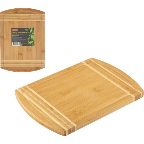 Разделочная доска из бамбука Foresta di bambu: стиль и функциональность Разделочная доска из бамбука Foresta di bambu размером 28x19.5x1.5 см станет незаменимым помощником на вашей кухне. Изготовленная из натурального бамбука, эта доска отличается прочностью и долговечностью, а также стильным дизайном. Бамбук – экологически чистый материал, который не наносит вреда окружающей среде. Он легкий и прочный, что делает его отличным выбором для разделочных досок.