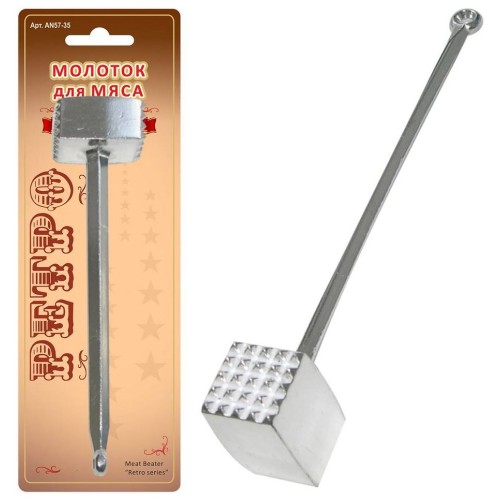 Приготовить аппетитные и сочные отбивные поможет кухонный молоток для мяса «Ретро». Рабочая часть имеет зубчатые и гладкие поверхности, зубцы идеально подойдут не только для отбивки мясных кусочков, но и для размягчения жилок. С использованием молотка отбивные получаются нежными и сочными, как в ресторане. Такое блюдо понравится всем, кто соберется за домашним столом. Инструмент изготовлен из алюминия, не деформируется со временем, не образует коррозии, гигиеничен и безвреден для здоровья. После использования тщательно промойте в воде с жидкими моющими средствами.