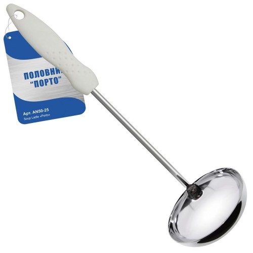 Подача супов, компотов, соусов, жидких блюд и напитков невозможна без половника — простого приспособления, которое должно быть на каждой кухне. Кухонный инструмент состоит из чаши и ручки, изготовлен из хромированной стали и пластмассы. На ручке есть отверстие, за которое половник можно повесить на крючок. После использования промойте в проточной воде с моющими средствами.