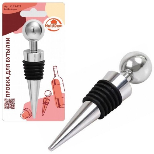 Пробка для бутылки - стильный аксессуар на вашей кухне. Многоразовая пробка предназначена для закупоривания открытых бутылок с вином, маслом, уксусом и другими жидкостями. Пробка для бутылки имеет скошенную конусообразную форму, подходящую для различного диаметра горлышка бутылок, что делает её универсальным практичным предметом. Пробка имеет силиконовый ободок - уплотнитель, благодаря которому она плотно фиксируется в горлышке бутылки и защищает содержимое от выветривания, окисления, попадания пыли и посторонних запахов. Перед первым использованием и после каждого применения промыть в теплой воде, можно с жидким моющим средством, сполоснуть проточной водой и просушить. Нельзя мыть в посудомоечной машине. Изготовлено из пластмассы (ABS) с хромированным покрытием, силикона. Размер 9х2 см.