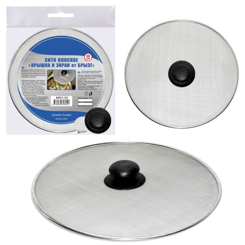 Плоское сито с ручкой эффективно защищает от брызг кипящего масла во время тушения и жарки. Накройте сковороду во время приготовления пищи, пар будет удаляться через мелкую сетку, при этом капли масла будут задерживаться внутри. Изделие оснащено удобной ручкой, которая не нагревается и не плавится во время использования. После использования помойте экран губкой с моющими средствами для удаления жира. Изготовлено из стальной сетки с коррозионностойким (хромированным) покрытием. Диаметр 28 см.