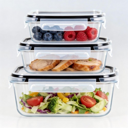 Набор стеклянных контейнеров: 370мл, 640мл,1040 мл; Герметичные крышки; Не впитывает запахи; Термостойкое стекло; Размеры: 15*10,9*5,7 см; 17,4*12,8*6,5 см; 20,2*15,2*6,9 см; Подходит для микроволновой печи; Выдерживает температуру: от -20°С до 400°С; Можно использовать в качестве формы для запекания; Можно мыть в посудомоечной машине; Eco Friendly