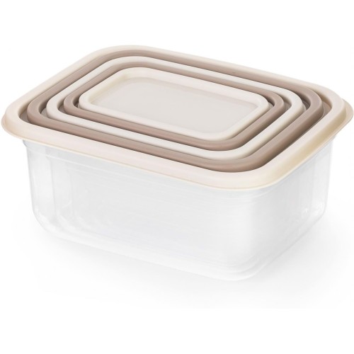 Практичные пищевые контейнеры для хранения и транспортировки салатов, вторых блюд, закусок, бакалеи и мелочей. Удобная прямоугольная форма с закруглёнными углами, крышки с язычками для лёгкого открывания. Благодаря системе «матрёшка» контейнеры и крышки компактно складываются, экономя пространство. Изготовлены из качественного пищевого пластика, легко моются вручную и в посудомоечной машине. Глянцево-матовая поверхность и интерьерные цвета делают их эстетичными даже на открытой кухне. (0,2л; 0,4л; 0,7л; 1,2л; 1,9л)